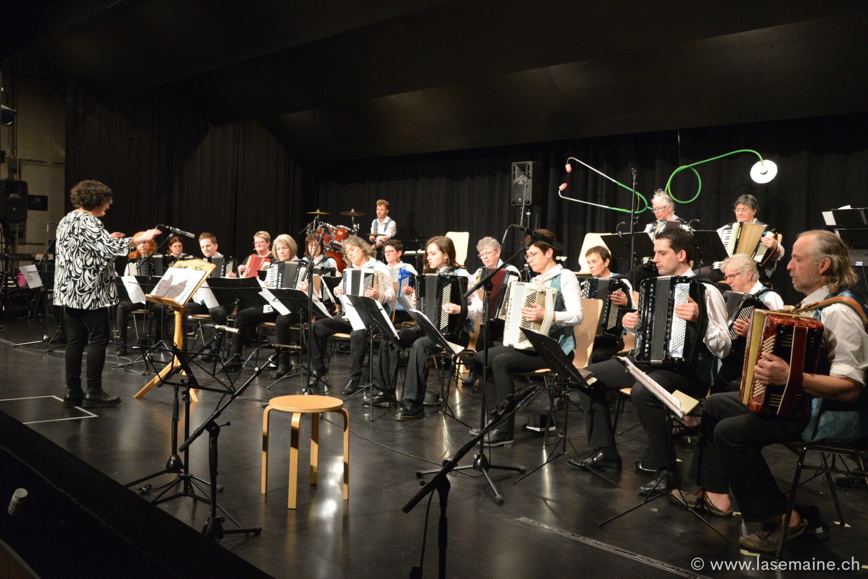 Le club senior, sous la houlette de Marinette Geiser, a présenté un véritable concentré multivitaminé. Les titres ont montré toute la palette technique de l’accordéon. L’ambiance s’est d’abord échauffée avec le sensuel tango Piazzolino, avant de retrouver un peu de fraîcheur, sur la fin, dans la Valse de la Forêt. Entre deux, les spectateurs ont été transportés dans un tourbillon festif grâce à un medley écossais et ils ont pu rêvasser sur le titre We are Young. L’élégance du célèbre Eté, de Rondo Veneziano a beaucoup plu. Mais le public fut totalement conquis au moment d’écouter Amboss Polka. L’énergie de Viva la Vida, de Coldplay, et Dans les yeux d’Emilie, de Joe Dassin, ont prouvé encore que la musique est le meilleur des remèdes contre la morosité hivernale.