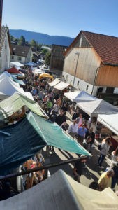 Lors de la partie officielle égayée par des productions très appréciées du groupe folklorique SQ Amidici, deux orateurs ont prononcé une poignante allocution, soit le conseiller d’Etat Pierre Alain Schnegg et le directeur de la Chambre d’économie publique Grand Chasseral Patrick Linder. Ils ont tous les deux mis l’accent sur l’excellence et le côté fédérateur de cet événement automnal incontournable. Pour la première fois, un concours musical a été organisé au Marché d’automne de Champoz. Les deux groupes engagés ont fait étalage de leur talent dans des styles totalement différents et tout s’est finalement joué dans un mouchoir de poche. Le jury a désigné le groupe Toxic Rock, vainqueur de son duel avec Jazz’On, ensemble issu de la Musique des Jeunes de Bienne. Le concours du meilleur produit du terroir a été remporté par Line Christen pour ses pâtisseries et celui du meilleur produit artisanal par Raquel Vazquez pour son savon artisanal à la cire d’abeille de Champoz. Ce quinzième marché qui avait tout pour plaire a donc vu son rayonnement habituel s’assombrir en début d’après-midi lorsque la pluie et le vent sont venus jouer les trouble-fêtes : « J’ai connu un grand moment de solitude », a déclaré Joan Stoller. « En voyant la rue se vider progressivement de ses stands, c’est un peu comme si j’arrivais au marché le dimanche matin avec la déception en plus. Sur le moment, je n’en menais pas large, mais lorsque je suis arrivé sous la tente pour assister aux concerts, la présence d’environ 600 personnes m’a réchauffé le cœur. »