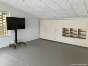dispose d’un local technique, d’une salle polyvalente accessible à la location et des locaux pour l’EJC, dont le bureau du directeur.