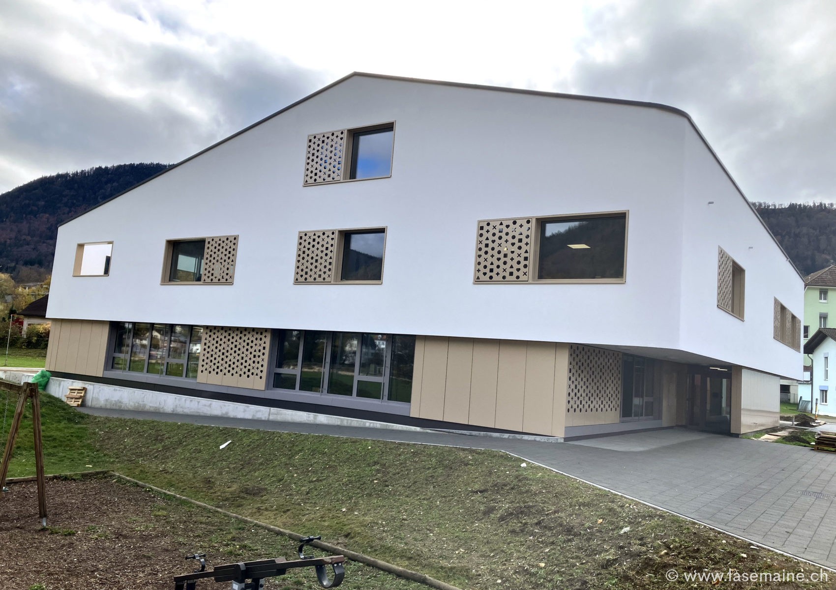 Aménagé pour accueillir des personnes à mobilité réduite, ce bâtiment est équipé d’un ascenseur ainsi que de WC et de vestiaires à tous les étages. Fonctionnel, lumineux et spacieux, ce véritable joyau architectural fait l’unanimité auprès de ses utilisateurs. « Je remercie les membres de la commission de construction pour leur engagement exemplaire durant deux ans, les employé-e-s de la crèche, de l’école enfantine et de l’EJC, les artisans ainsi que toutes les personnes qui ont contribué à l’aboutissement de ce magnifique bâtiment », signale Claude-Alain Wüthrich. La grande majorité des finitions extérieures ont déjà été réalisées. L’engazonnement et la place de jeux pour les enfants se concrétiseront au printemps prochain. « Il est clair que je considère l’aboutissement de ce projet comme un immense soulagement compte tenu du temps et de l’énergie qu’il a fallu y consacrer. Les membres de la commission de construction ont toujours pu entretenir de bonnes discussions avec l’architecte et les artisans, ce qui n’est évidemment pas un aspect négligeable », conclut Claude-Alain Wüthrich.