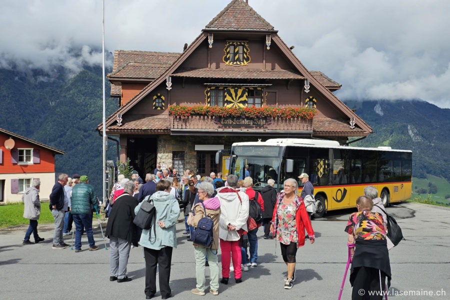 Chaque groupe, emmené par deux cars, a pris la route dans la bonne humeur en direction de Neuenkirch (LU), pour une pause café-croissant. Le voyage s’est ensuite poursuivi vers Seelisberg (UR), véritable balcon panoramique sur le magnifique lac des Quatre-Cantons, où un repas a été partagé dans une ambiance détendue et festive.