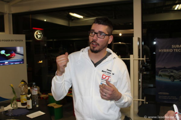 Vendredi 13 mars, la famille Burri, un noyau de passionnés et les représentants des médias ont pris part à une cérémonie suffisamment confidentielle pour échapper à la valse des annulations. Signe que la psychose du COVID-19 ne s’installe pas dans un endroit où le virus de la voiture se transmet de génération en génération. Le décor étant planté, on peut maintenant se pencher sur la partie consistante de la soirée, soit la présentation de la voiture que pilotera Michael Burri cette saison, une Citroën Saxo F2000. «Je me trouvais sur la plage lorsque j’ai contacté son propriétaire qui n’a pas voulu m’envoyer la photo. Il tenait absolument à ce que je me rende sur place, à Rouen, pour découvrir le véhicule. Quand je l’ai vu, j’ai immédiatement craqué!», s’exclame-t-il. Chaque vendredi soir durant deux ans, Michael et deux de ses potes, Ludovic «Caquelon» Fringeli et Jonathan «Titus» Ruch ont retapé cette voiture pièce par pièce en la concevant non seulement spécialement au goût du pilote, mais également pour coller au style du fidèle navigateur Anderson Levratti. Equipé d’un moteur de 1600 cm3 avec une boîte séquentielle, cette voiture pèse près de 950 kg. Un montant de Fr. 60’000.- a été nécessaire pour la réalisation de cette Citroën Saxo F2000 qui développe entre 205 et 210 CV.