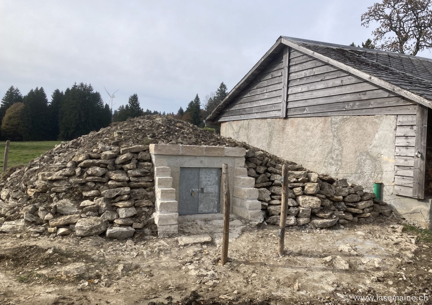 La Bourgeoisie de Courtelary, en collaboration avec le Parc régional Chasseral, a réalisé une première restauration de citerne en 2025, entre Chalet-Neuf et La Bise de Cortébert, au lieu-dit Sur les Roches. La rénovation a été achevée en octobre 2025. Les travaux ont inclus la refonte complète de la voûte en pierre, l’installation d’un nouveau cadre en pierre de taille pour la porte de la citerne ainsi que la pose d’une nouvelle porte en acier galvanisé. Un crépi d’étanchéité a également été appliqué sur l’intérieur de la citerne afin de garantir son bon fonctionnement. Ce projet fait partie d’une initiative menée par la Bourgeoisie de Courtelary, qui possède une dizaine de citernes, dont trois nécessitent d’important travaux de restauration. Ces citernes de récupération d’eau de pluie sont essentielles pour approvisionner les pâturages en eau et abreuver le bétail pendant la saison d’estivage, en particulier pendant les périodes de sécheresse. Une fois remises en état, elles permettent d’éviter de recourir à des camions-citernes. Ce projet s’inscrit ainsi dans une logique de réponse aux défis posés par le changement climatique, mais aussi de préservation des traditions architecturales locales telles que la construction en pierre sèche.
