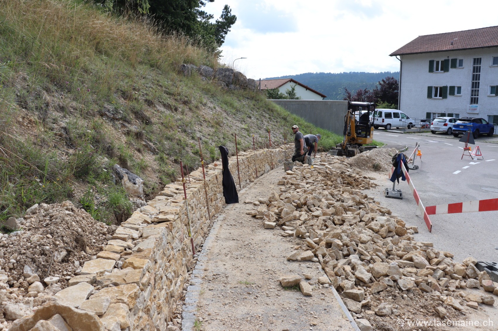 Un nouveau mur en pierres sèches long de 74 mètres embellit la rue Chautenatte depuis l’été 2025. (photo ©Parc Chasseral)