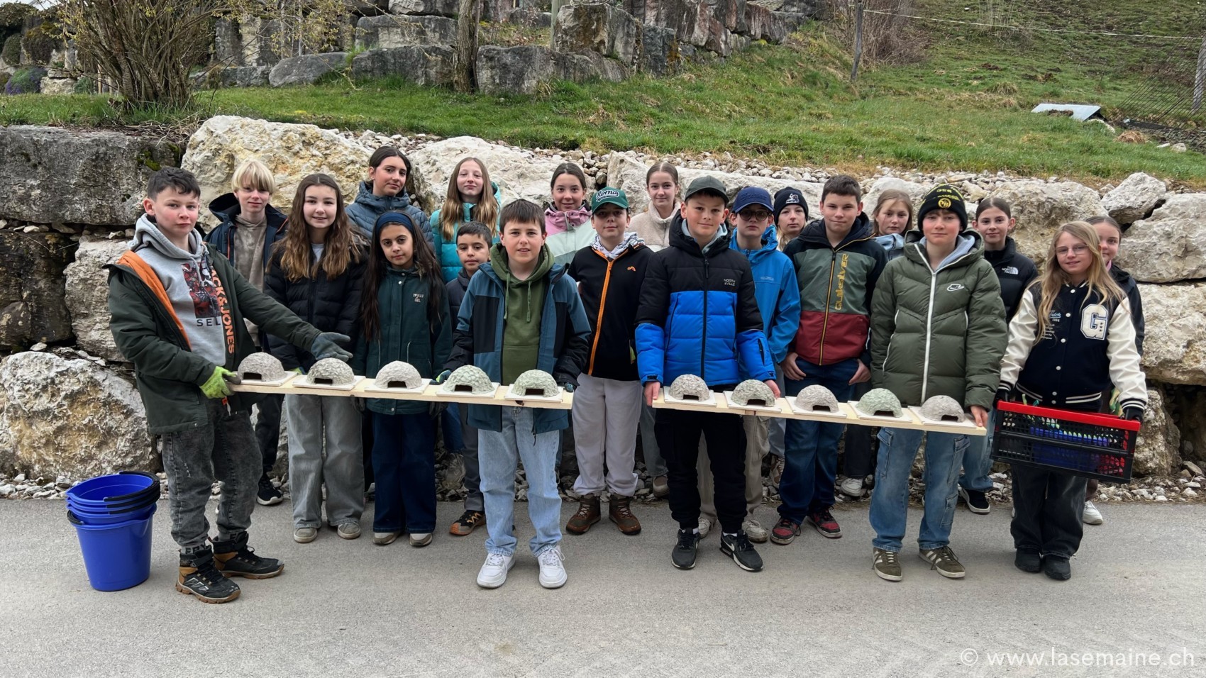 Des nids non habités peuvent parfois être la cause d’un manque de nettoyage, d’où l’importance de penser à effectuer ce nettoyage dans l’idéal chaque année, une fois les hirondelles reparties. Ainsi, les chances de voir revenir des hirondelles augmentent. Sarah Uldry tient à rappeler qu’il est recommandé, si l’on souhaite poser des nids d’hirondelles, d’en ajouter de préférence à une colonie déjà active ou de rester dans un périmètre de 500 mètres de nids fréquentés. Avec l’aide de la famille Bangerter, de Saicourt, les élèves ont nettoyé une cinquantaine de nids et posé les leurs sur deux bâtiments. L’un des deux bâtiments accueille l’une des plus grandes colonies d’hirondelles de fenêtres de la région.