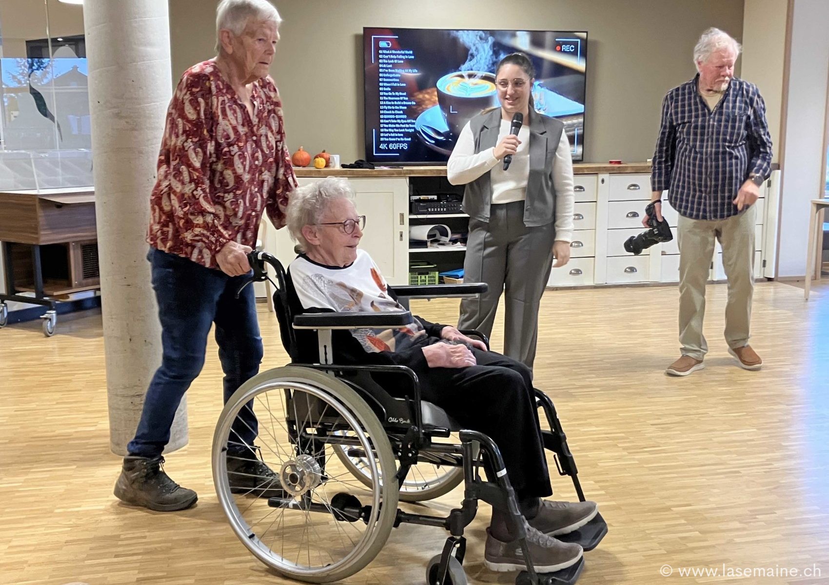 Tordre le cou aux clichés véhiculant une réputation de tristesse, d’inactivité et de solitude aux résidences pour personnes âgées entre parmi les objectifs de la double animation shopping/défilé de mode qui illumine la Résidence Les Aliziers à Crémines l’espace d’une journée. En voyant parader joyeusement les résidentes et résidents accompagnés de membres de leur famille ou de bénévoles, l’auditoire se sent touché et émerveillé par ces instants privilégiés dont on ne se lasse pas. Valorisation, reconnaissance, coquetterie, joie de vivre et convivialité ne sont pas de vains mots lors de ce show éblouissant réunissant non seulement l’ensemble des membres du personnel mais également de nombreux bénévoles. « Je tiens en préambule à remercier le moteur de cet événement, Nicole Giamberini, une ancienne animatrice du lieu qui s’engage corps et âme pour faire vivre cette lumineuse journée », relève Laura Horbacz, responsable des soins et accompagnement. « Organisée au printemps pour la collection estivale et l’année suivante en automne, pour la collection hivernale, cette animation se décline en deux phases, soit le shopping où les habits sont destinés à la vente et le défilé de mode où les habits sont prêtés », poursuit notre interlocutrice.